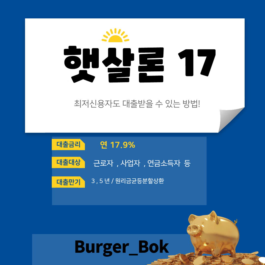 오늘 소개시켜드릴 금융상품은 햇살론 17입니다.