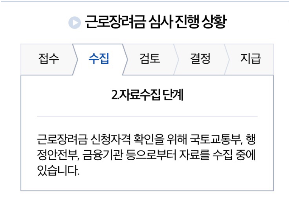 조회를 누르면 진행상황을 확인할 수 있습니다. 접수 - 수집 - 검토 - 결정 - 지급 단계로