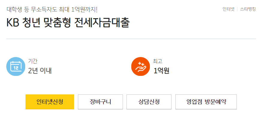 KB 국민은행 청년 맞춤형 전세자금대출 신청방법