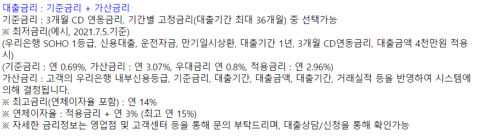 해당 상품은 최대 4천만원까지 대출이 가능하며 대출고객이 갖고 있는 우리은행 및 다른 금융기관의